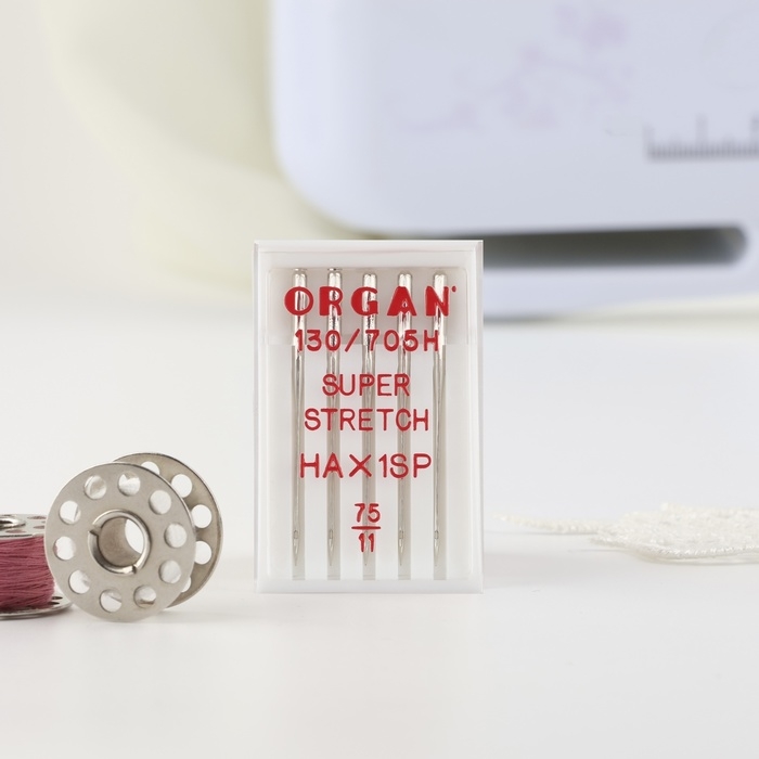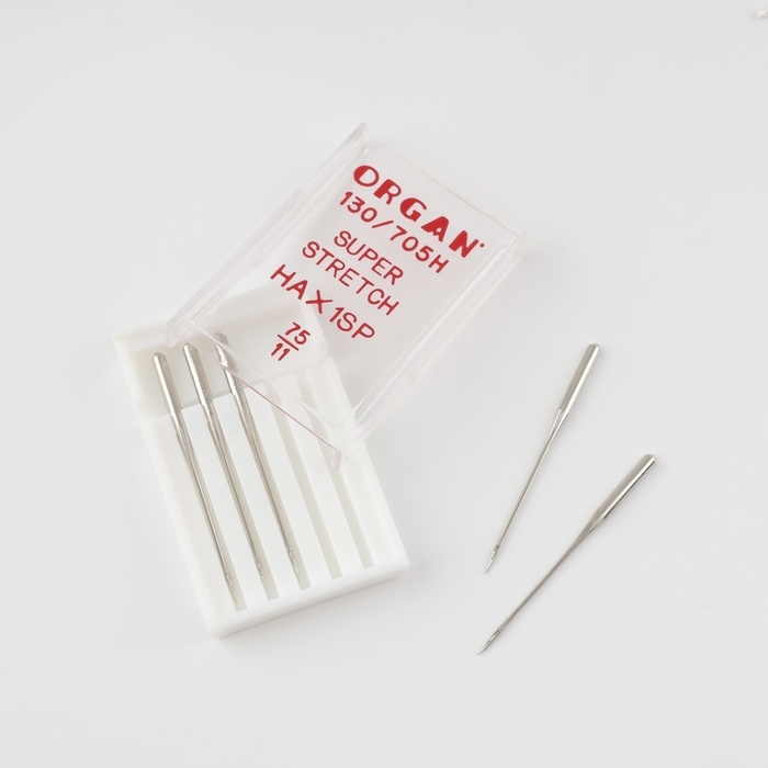 Качество швейной иглы важно так же, как механизм машинки. Иглы суперстрейч предназначены для работы с высокоэластичными материалами: трикотажем, спандексом и другими. Также они подходят для вышивки на машине. Лёгкое закругление острия отодвигает нити полотна и не спускает петли.