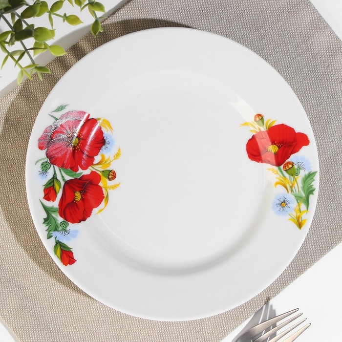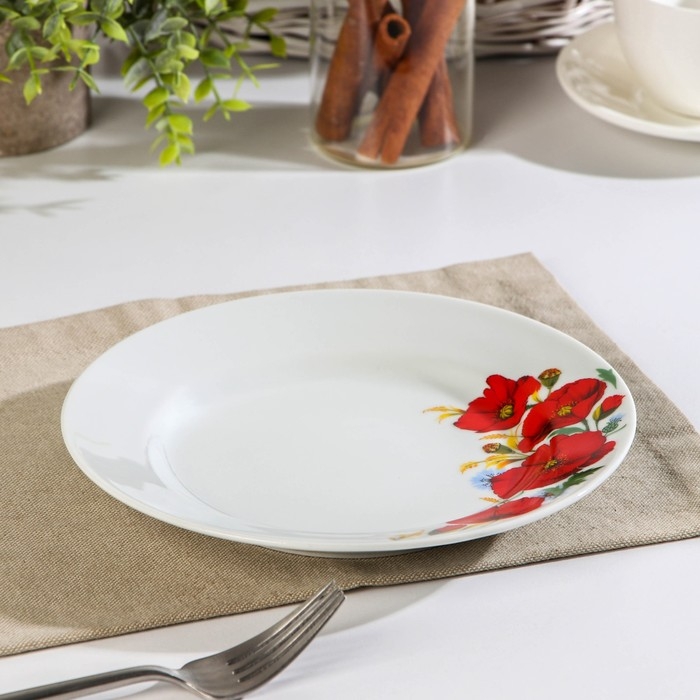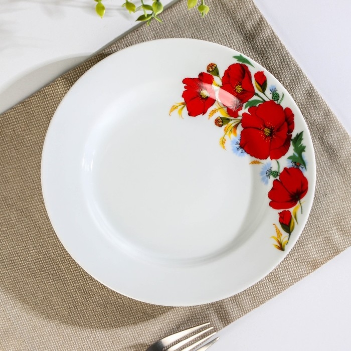 Тарелка Добрушский завод «Маки красные», d=20 см, фарфор, белая