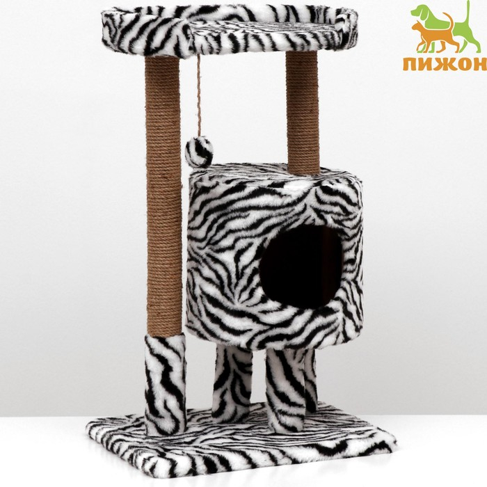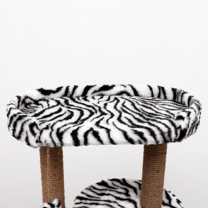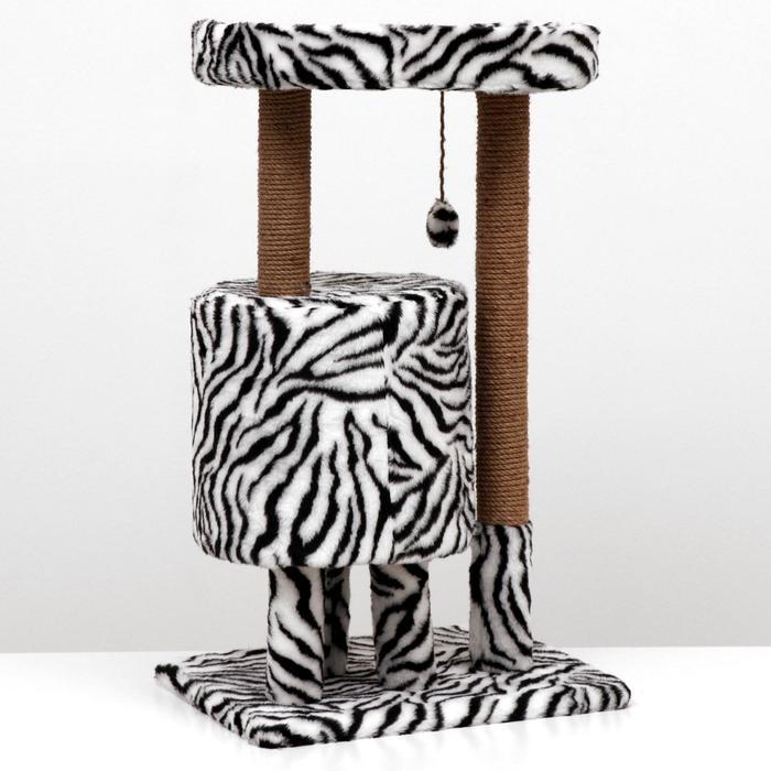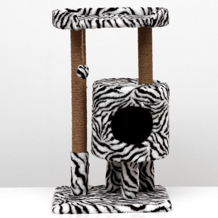 Домик для кошек с когтеточкой "Круглый с площадкой", 52 х 52 х 95 см, зебра