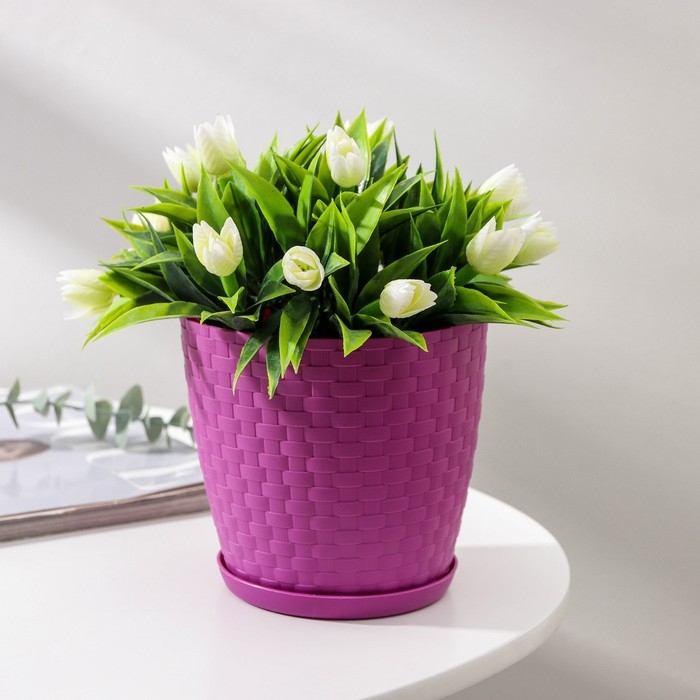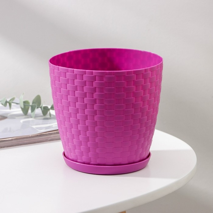 Горшок для цветов с поддоном «Ротанг», 1,2 л, цвет сиреневый