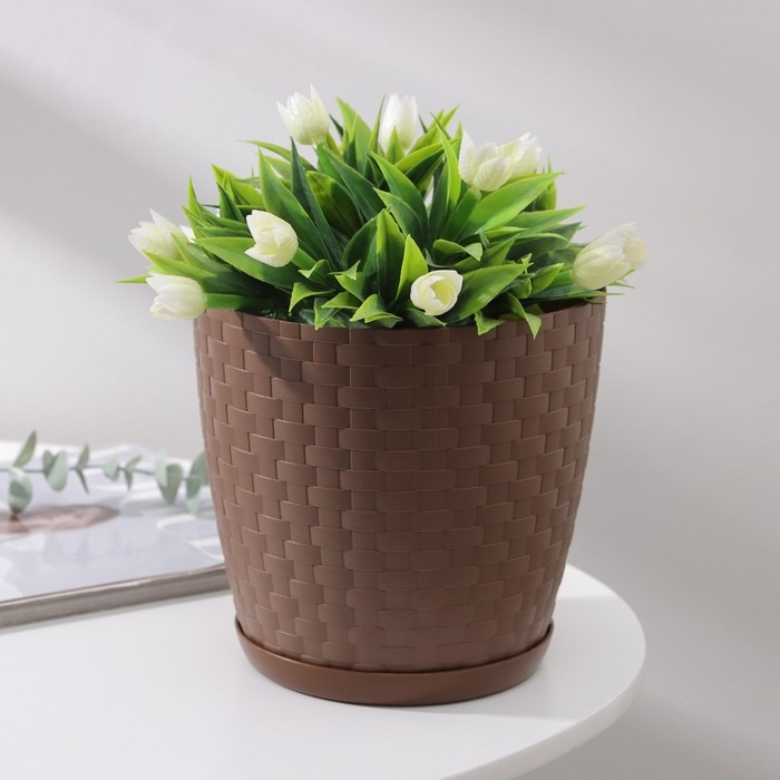 Горшок для цветов с поддоном «Ротанг», 3 л, d=17 см, h=17 см, коричневый