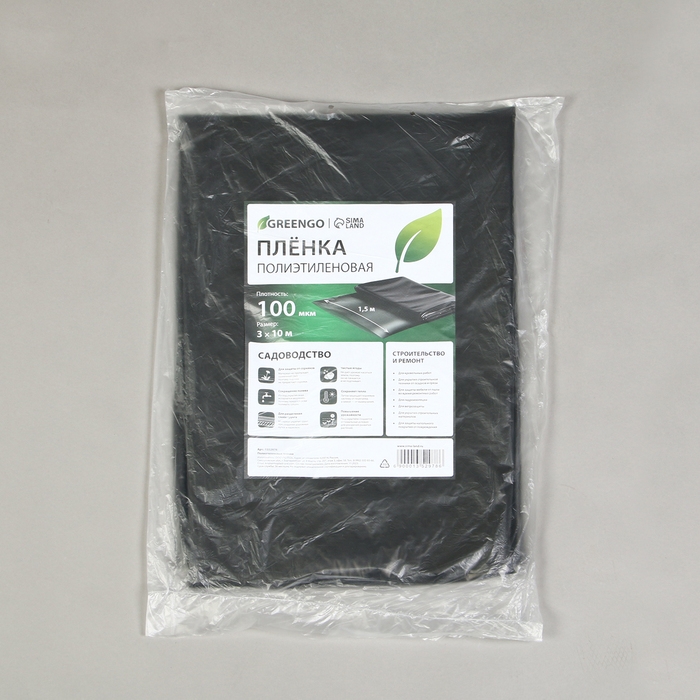 Плёнка полиэтиленовая, техническая, 100 мкм, чёрная, длина 10 м, ширина 3 м, рукав (1.5 м × 2), Эконом 50%, Greengo