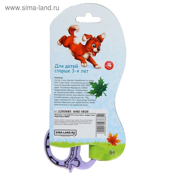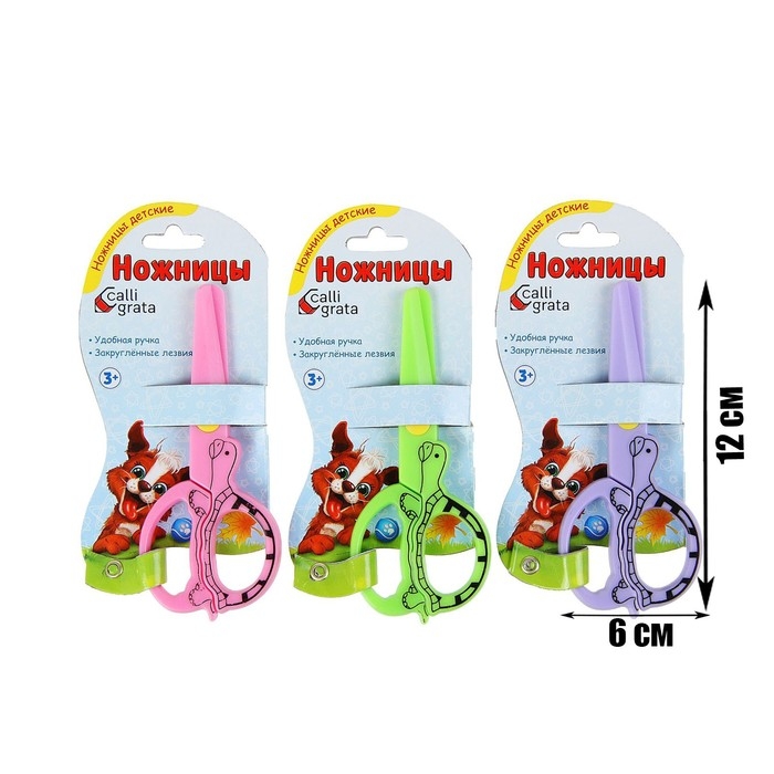 Ножницы детские "Черепашка", 12 см, пластиковые, корпус МИКС