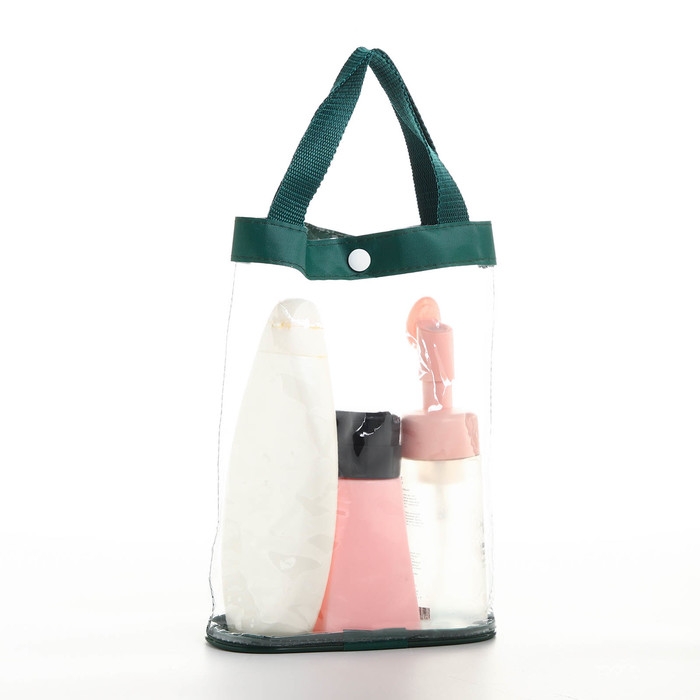 Косметичка на кнопке, цвет зелёный/прозрачный