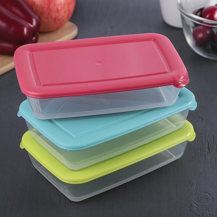 Набор контейнеров пищевых Доляна, 3 шт: 1 л, 18,5×12×7 см, прямоугольные, прозрачные, крышка зелёная