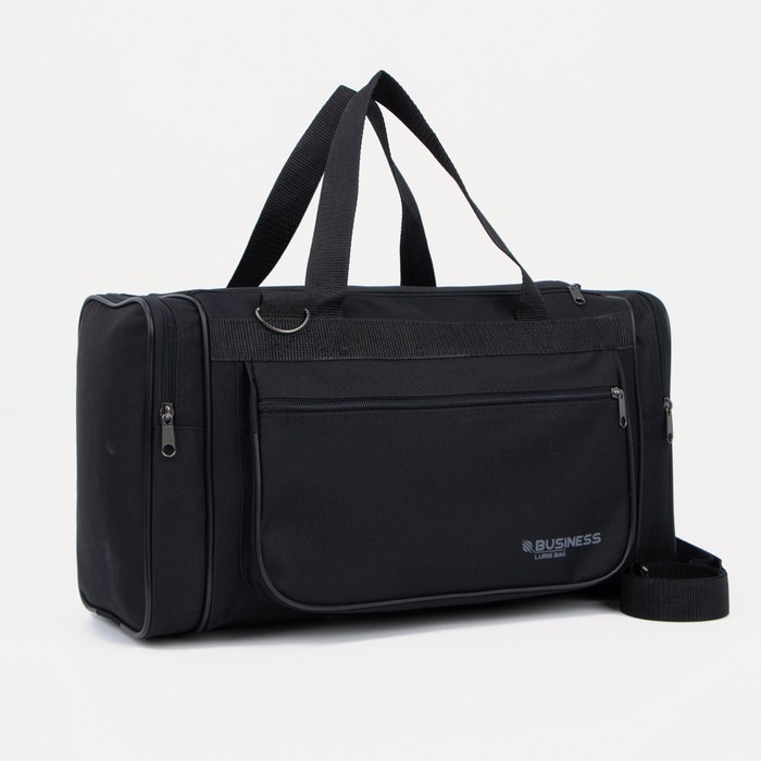 Сумка дорожная, 3 отдела на молниях, наружный карман, длинный ремень, цвет чёрный