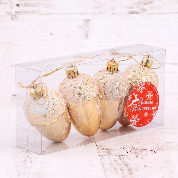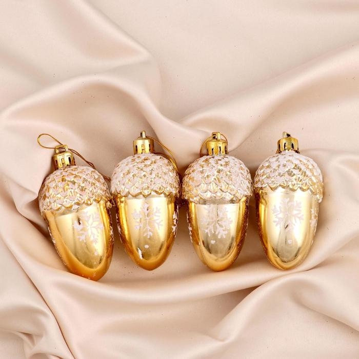 Украшение ёлочное "Жёлудь со снежинками" (набор 4 шт) 6х4 см, золото