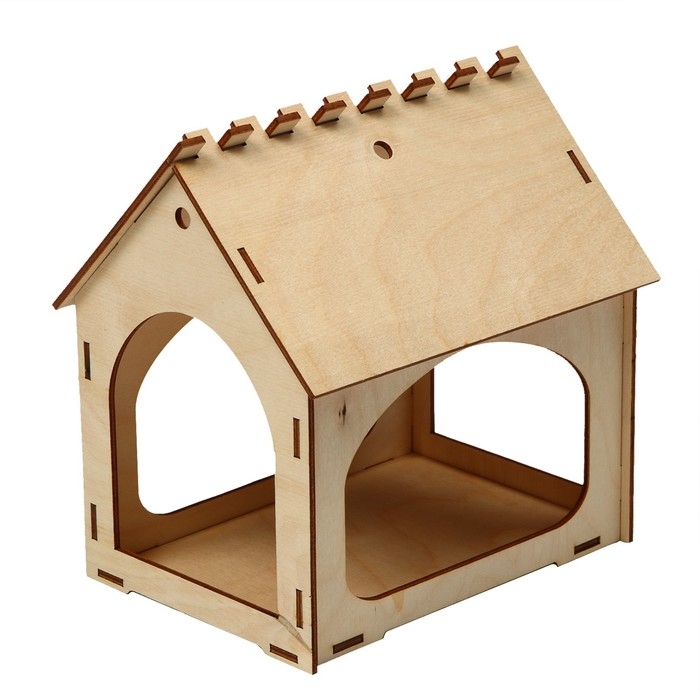 Чтобы собрать кормушку, аккуратно соедините фанерные детали, вставляя их в пазы. Используйте клей для лучшей фиксации. При желании модель можно раскрасить или задекорировать.