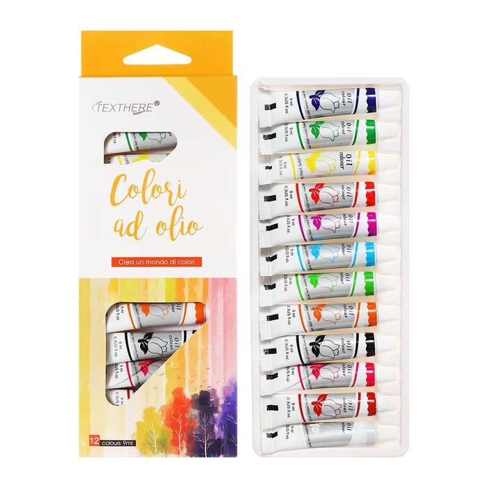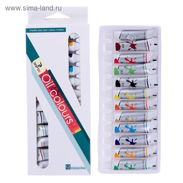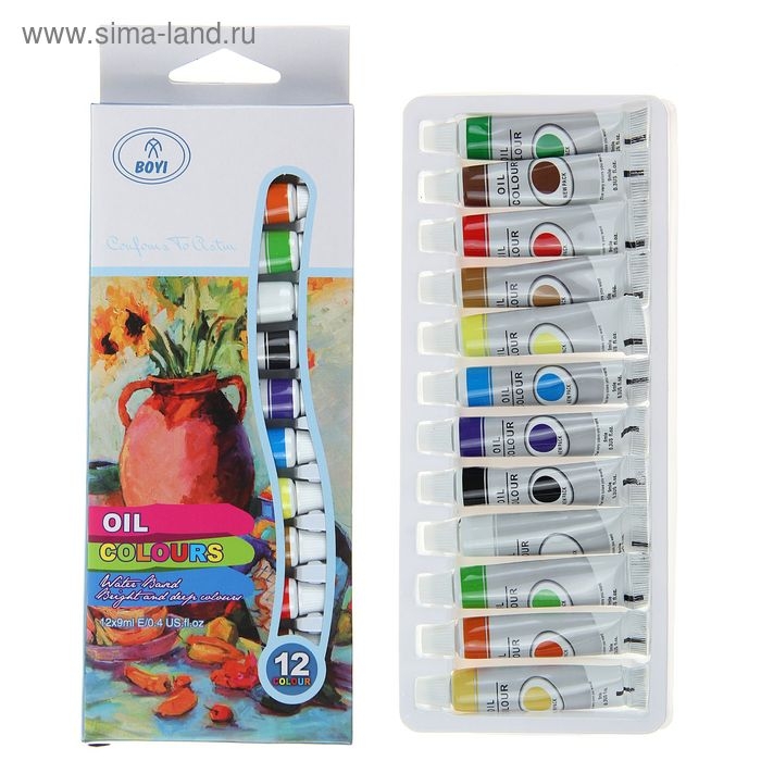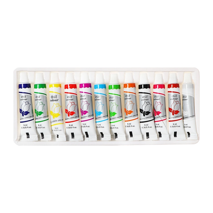 Краски масляные, 12 цветов, в пластиковой тубе, 9 мл, в картонной коробке