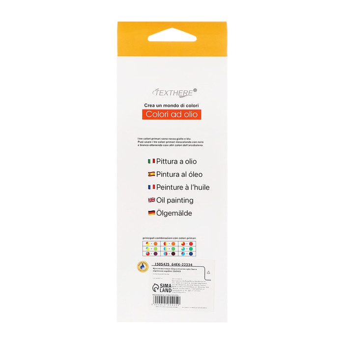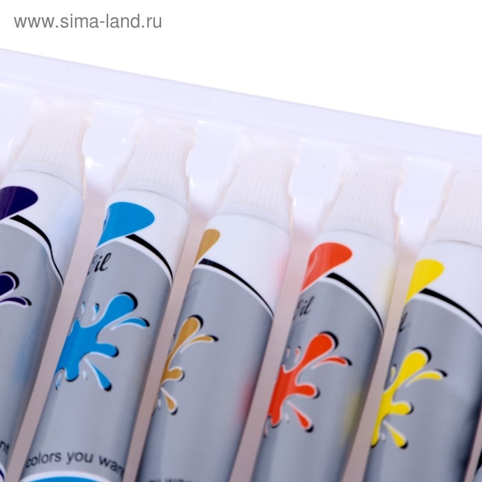 Краски масляные, 12 цветов, в пластиковой тубе, 12 мл, в картонной коробке