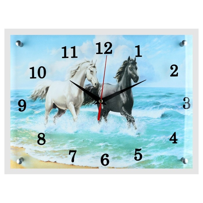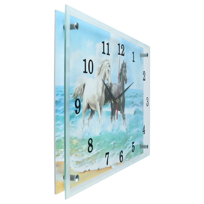 Часы-картина настенные, интерьерные "Лошади в море", бесшумные, 30 х 40 см