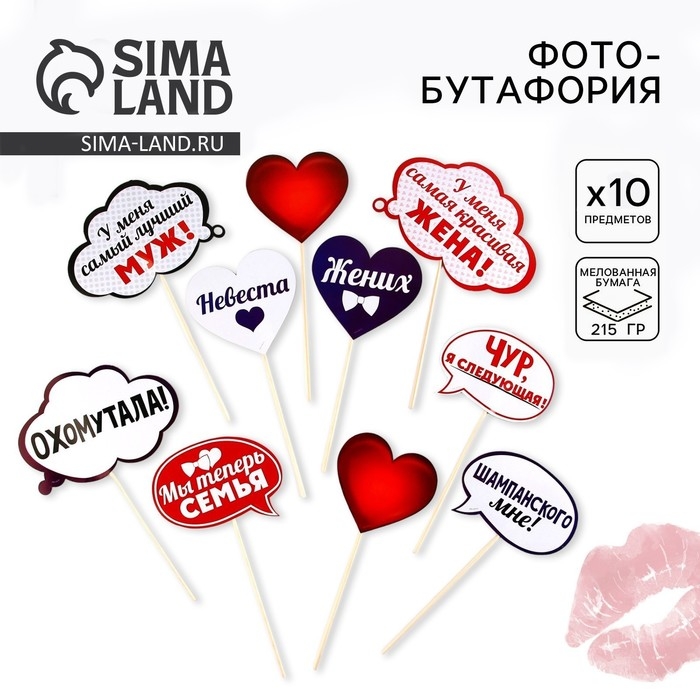 Фотобутафория на свадьбу «Жених и невеста», 10 шт.