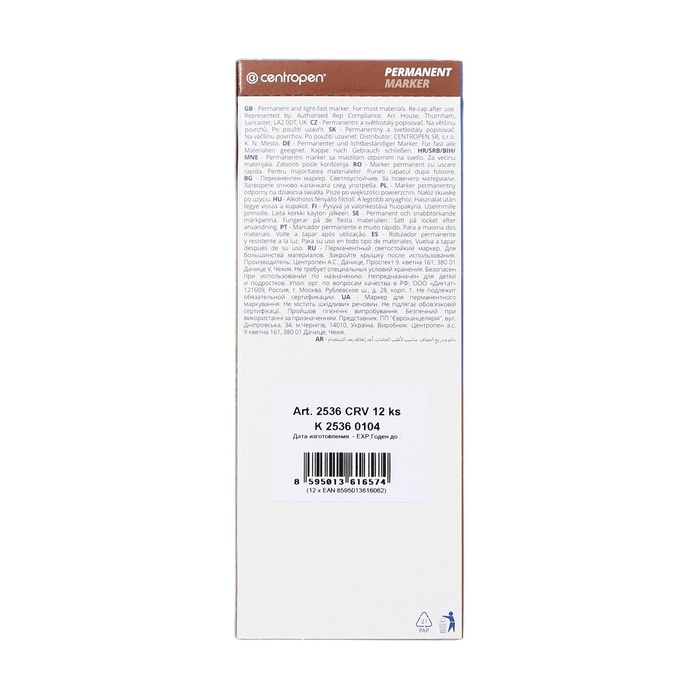 Centropen 2536 — это перманентый светостойкий маркер с эргономичной зоной обхвата. Предназначен для письма на любых поверхностях.