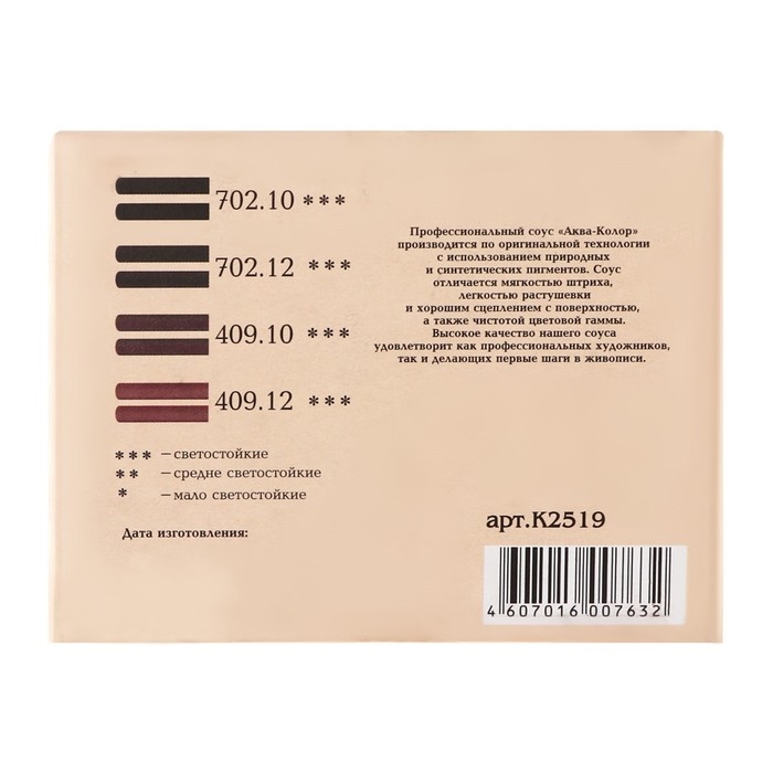 Классическая пастель "Аква-Колор" отличается мягкостью штриха, лёгкостью растушёвки и хорошим сцеплением с поверхностью, а также чистотой цветовой гаммы.
