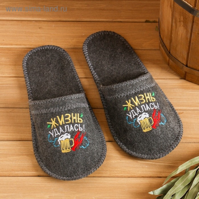 Тапочки банные с вышивкой "Жизнь удалась!"