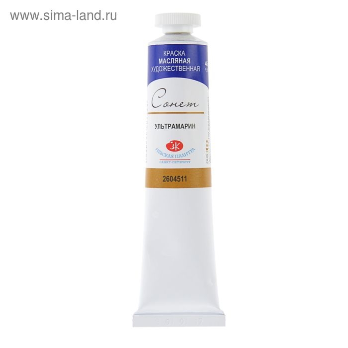 Краска масляная в тубе 46 мл, ЗХК "Сонет", ультрамарин, 2604511