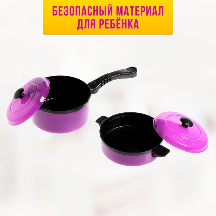 «Мини-кухня» — это набор яркой хозяйственной утвари, с которой малышка начнёт освоение новых социальных ролей, повторит поведение взрослых и самостоятельно приготовит вкусный обед для куколок.