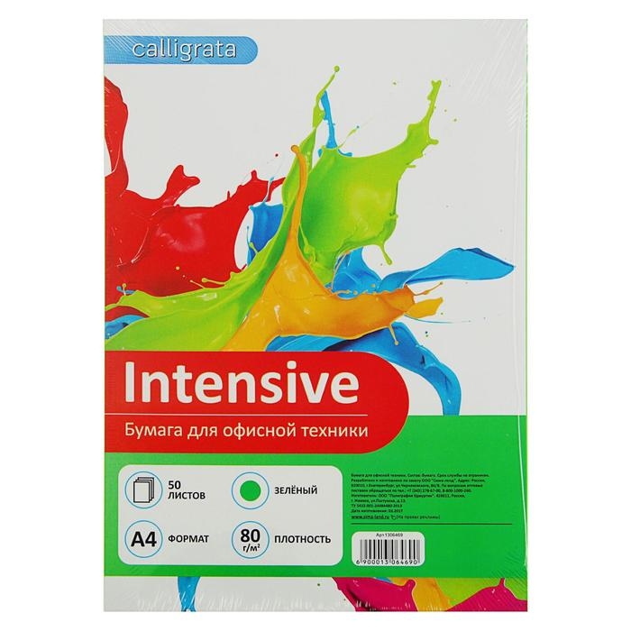 Бумага цветная А4, 50 листов Calligrata Интенсив, зелёная, 80 г/м²