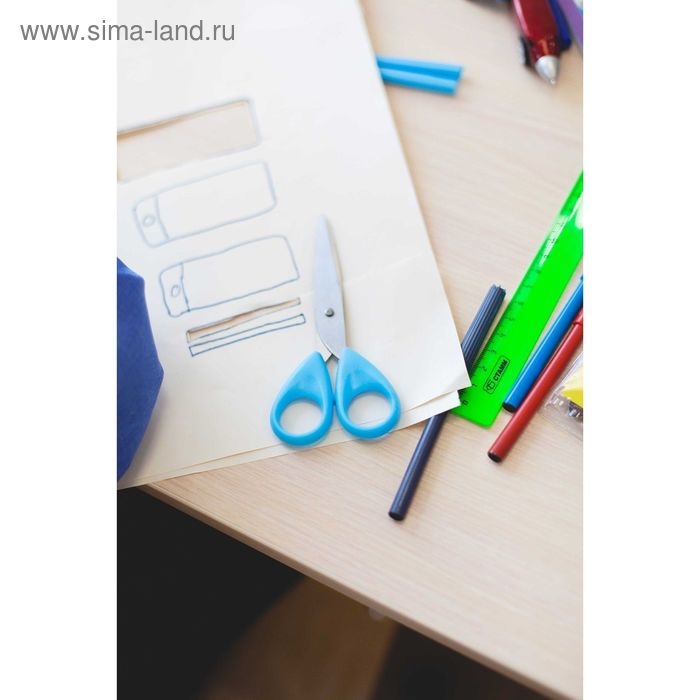 Ножницы канцелярские 13 см, травмобезопасные, пластиковые ручки, закруглённые концы, МИКС