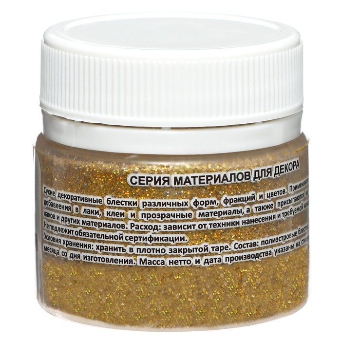 Декоративные блёстки LUXART LuxGlitter (сухие), 20 мл, размер 0.2 мм, голографическое золото