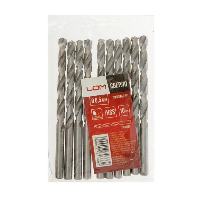 Сверло по металлу ЛОМ, HSS, цилиндрический хвостовик, 5.5×95 мм, 10 шт.