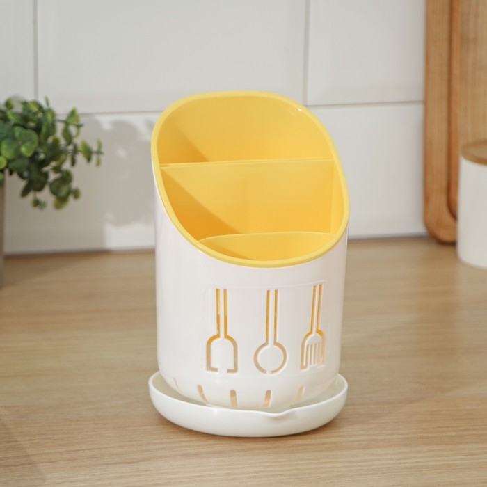 Подставка для столовых приборов с 3 отделениями - идеальный аксессуар для вашей кухни.