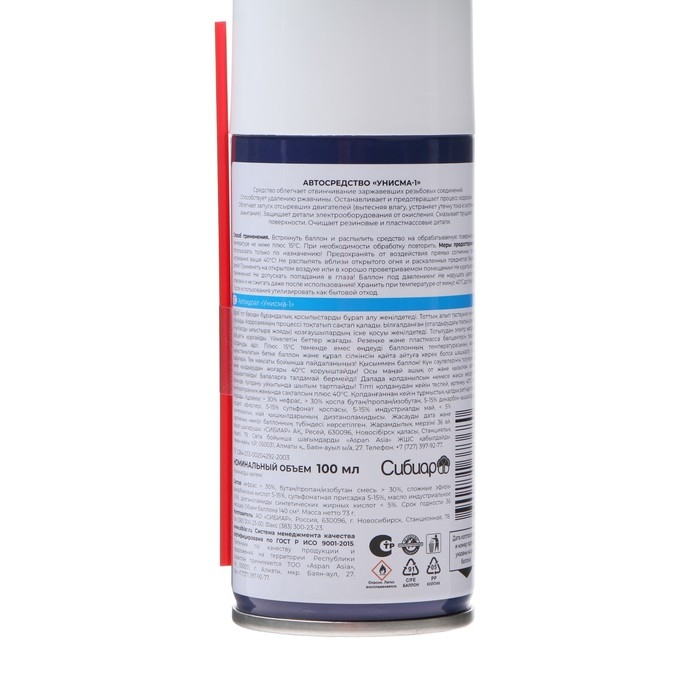 Унисма-1 — это незаменимое средство для отвинчивания заржавевших резьбовых соединений, способствующее удалению ржавчины, останавливающее и предотвращающее процесс коррозии. Средство облегчит запуск отсыревших двигателей, защитит детали электрооборудования от окисления, смажет трущиеся поверхности.