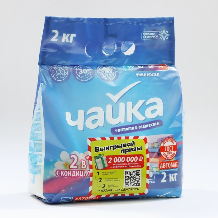 Порошок для стирки Чайка 2 в 1 «Чистота и свежесть», автомат, 2 кг