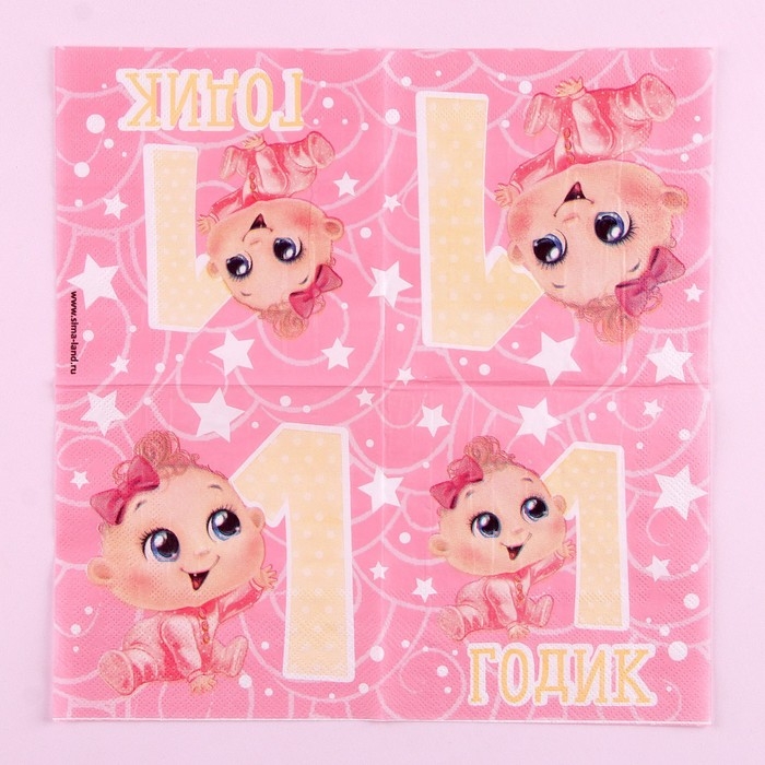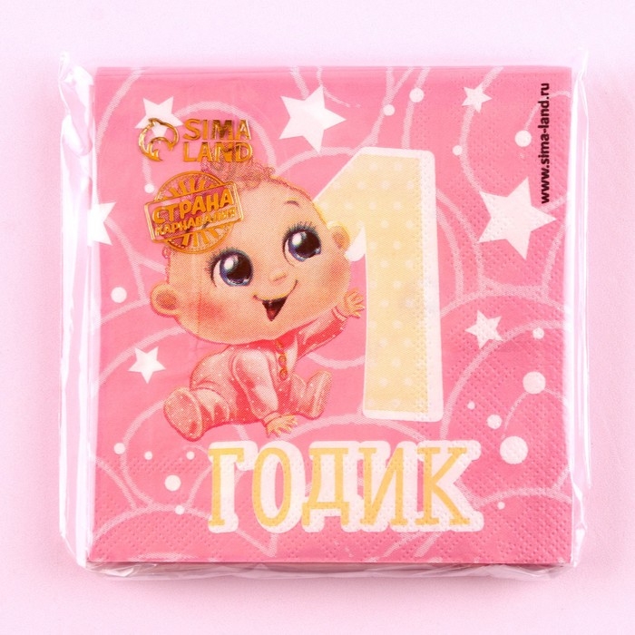 Салфетки бумажные «1 годик», малышка, 25х25см, набор 20 шт.