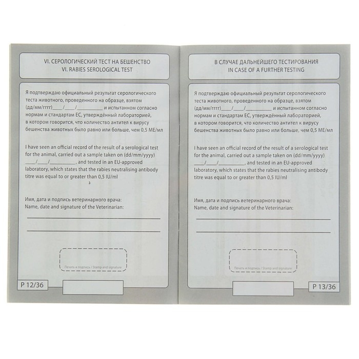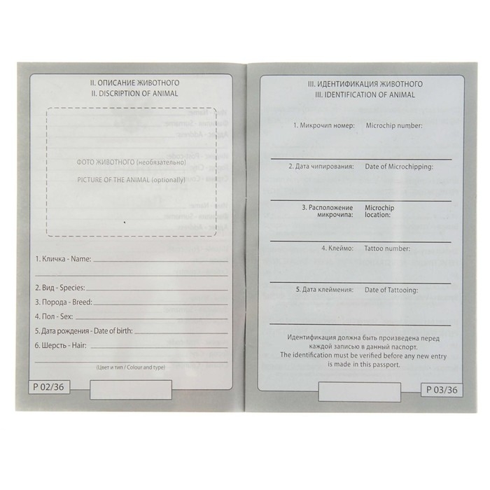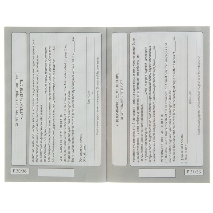 Ветеринарный паспорт международный универсальный с гербом, 36 страниц