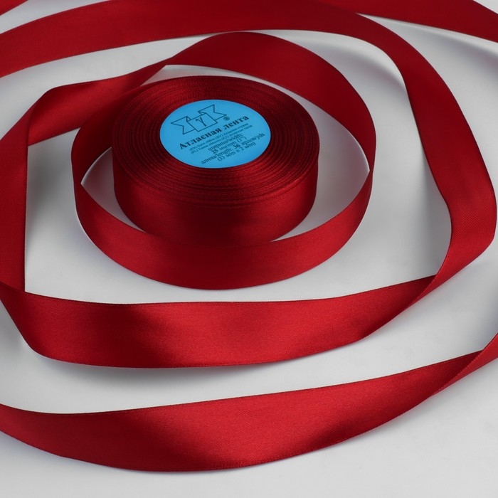 Лента атласная, 25 мм × 23 ± 1 м, цвет красный №26