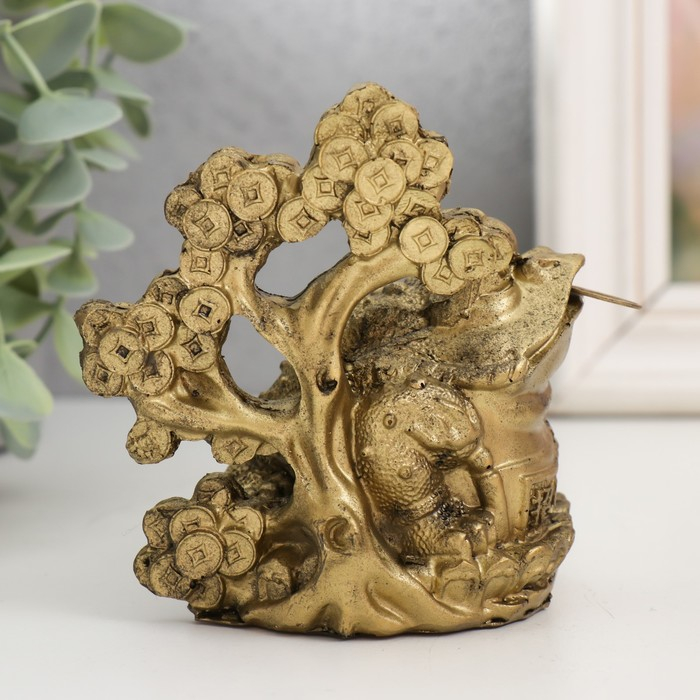 Нэцке полистоун "Жаба с денежным деревом" под бронзу 10х9,5х7,2 см