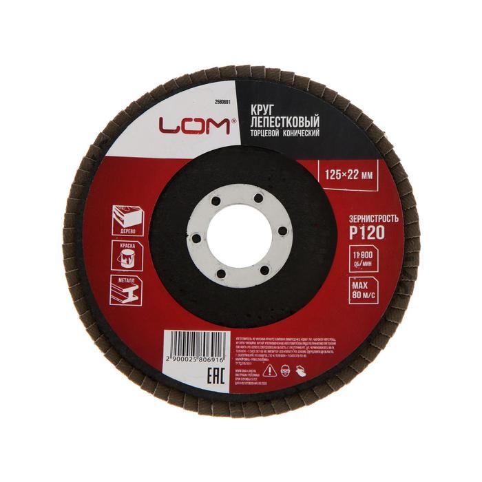 Круг лепестковый торцевой конический ЛОМ, 125 х 22 мм, Р120