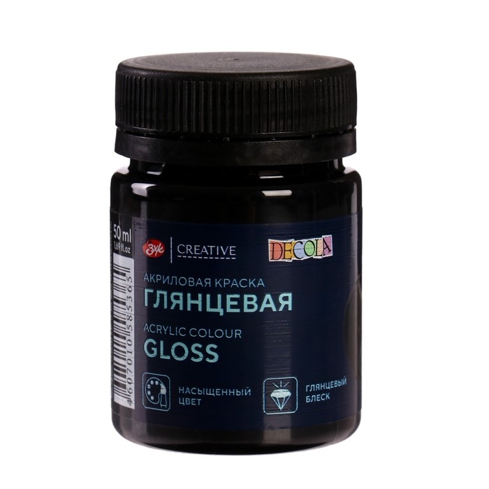 Краска акриловая глянцевая 50 мл, ЗХК Decola, чёрная, 2928810