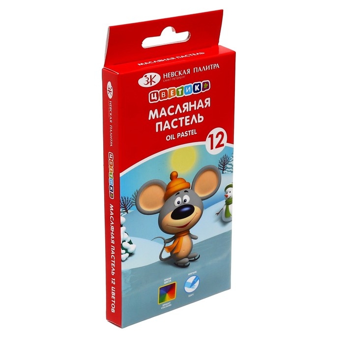 Масляная пастель 12 цветов мягкая в картонной коробке, европодвес