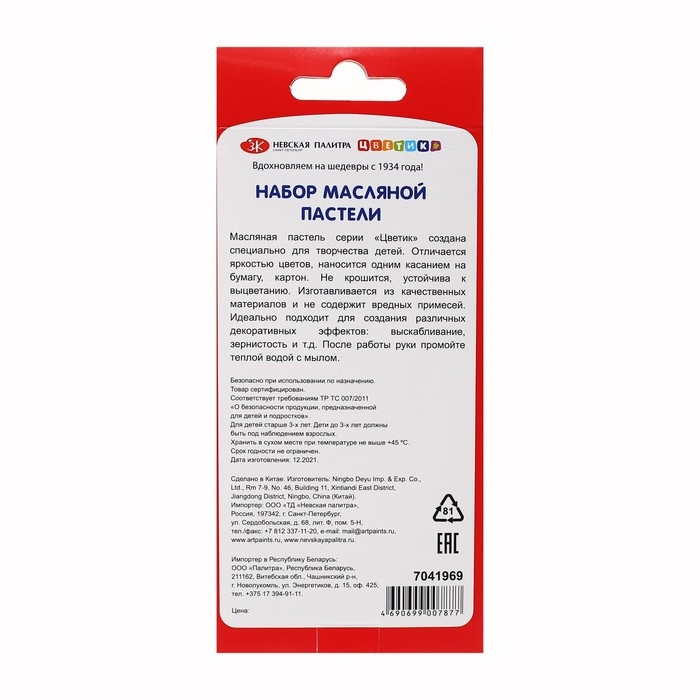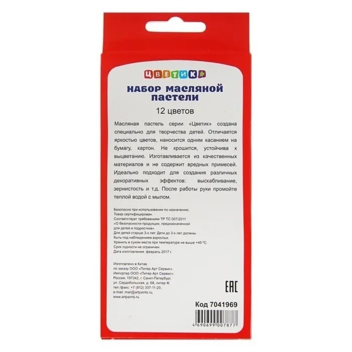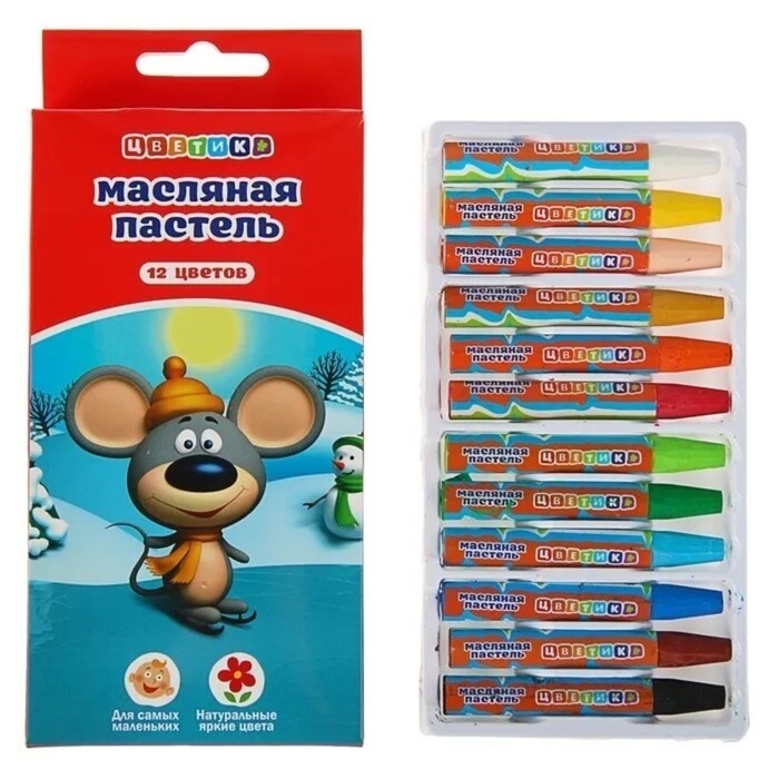 Масляная пастель серии "Цветик" создана специально для творчества детей, отличается яркостью цветов. Наносится одним касанием на бумагу, картон. Не крошится, устойчива к выцветанию. Изготовлена из качественных материалов и не содержит вредных примесей. Идеально подходит для создания различных эффектов: выскабливание, зернистость и т.д.