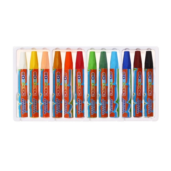 Пастель масляная "Цветик", 12 цветов, 75/10 мм, шестигранная
