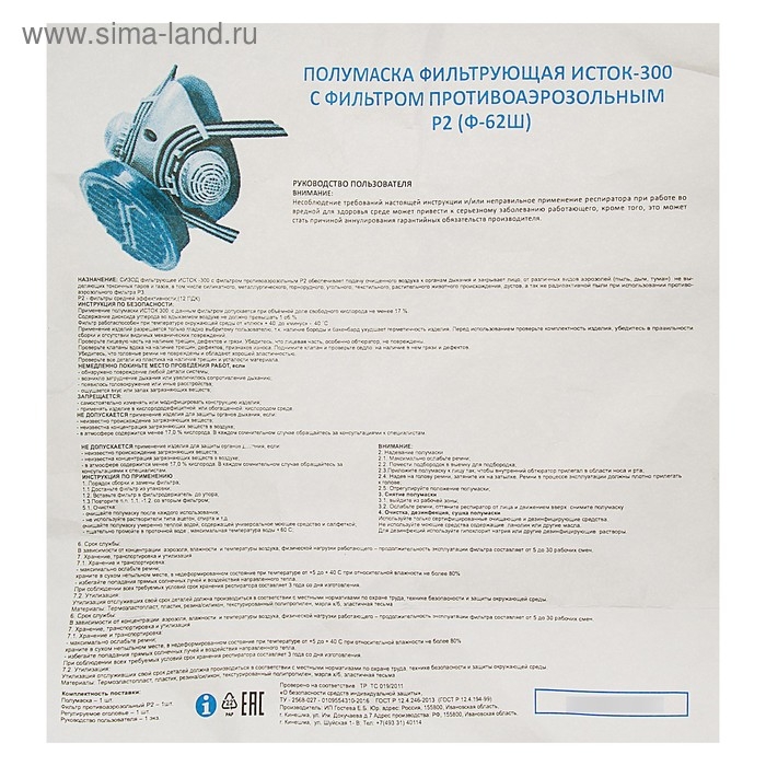 Полумаска фильтрующая "ИСТОК- 300" с фильтром противоаэрозольным