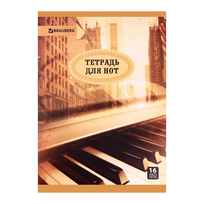 Тетрадь для нот А4, 16 листов, вертикальная BRAUBERG "Город звуков", МИКС