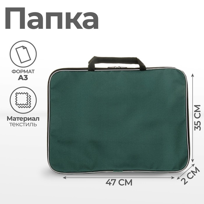 Папка для чертежей и рисунков А3, 470 х 350 х 20 мм, с ручками, текстильная, Calligrata Стандарт, Зеленая, плотность 600D