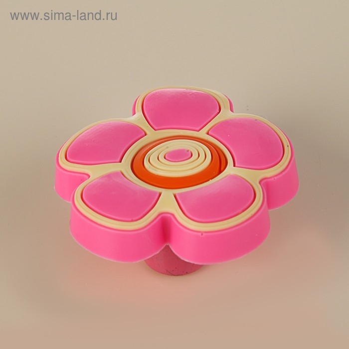 Ручка кнопка детская KID 024, "Цветочек 2", резиновая, розовая