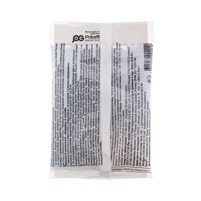Рассыпать гранулы по поверхности почвы вокруг растений, в местах скопления и передвижения вредителей (30 г на 10 м²).
