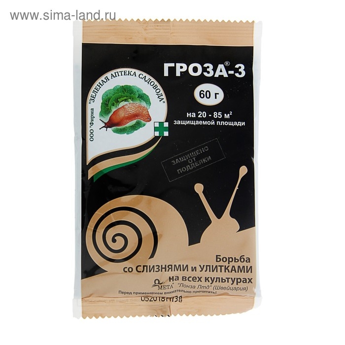 Средство для борьбы со слизнями и улитками Гроза 3, 60 г