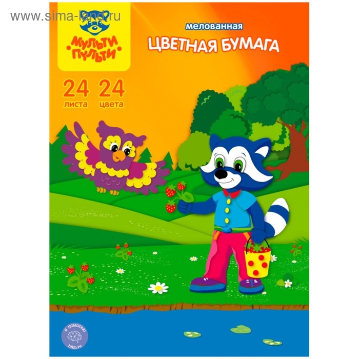 Бумага цветная A4, 24 листа, 24 цвета на скобе, Мульти-Пульти, мелованная