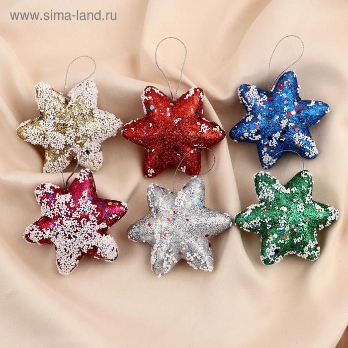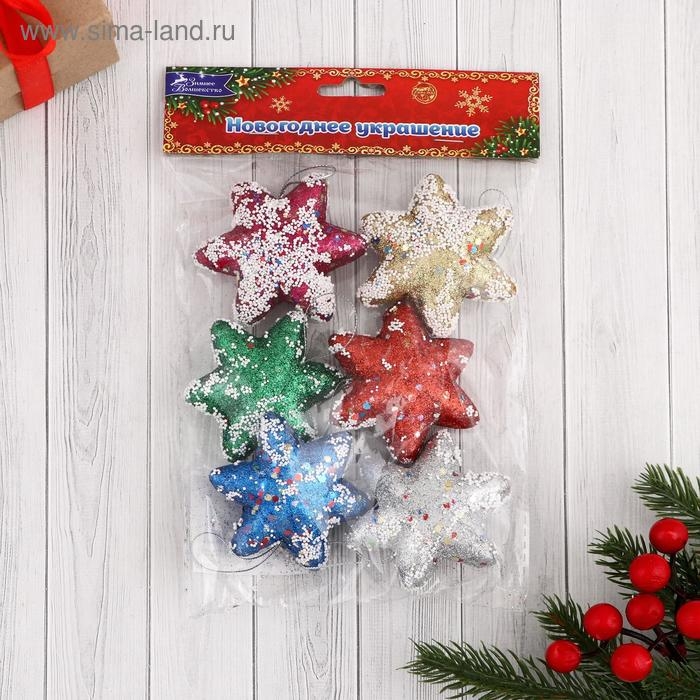 Украшение ёлочное "Звёзды с блёстками" (набор 6 шт) 7 см, микс