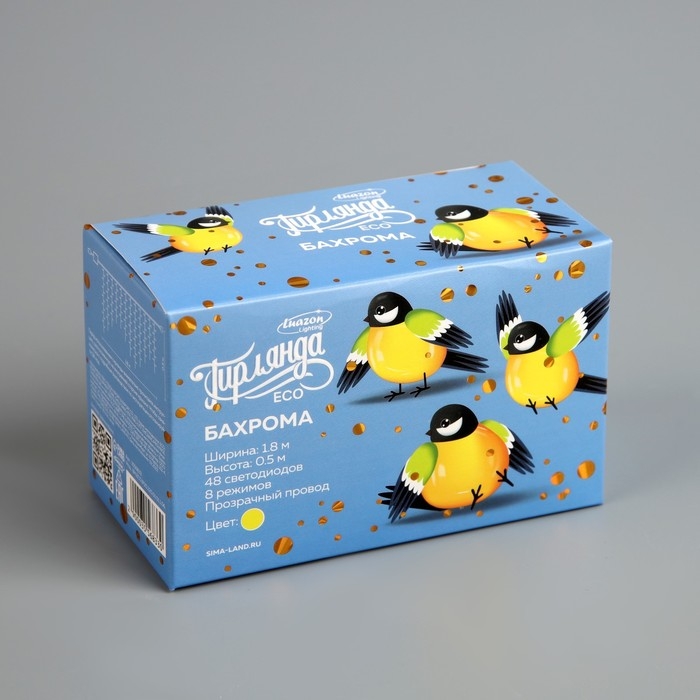 Гирлянда «Бахрома» 1.8 × 0.5 м, IP20, прозрачная нить, 48 LED, свечение жёлтое, 8 режимов, 220 В
