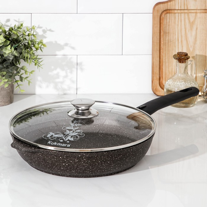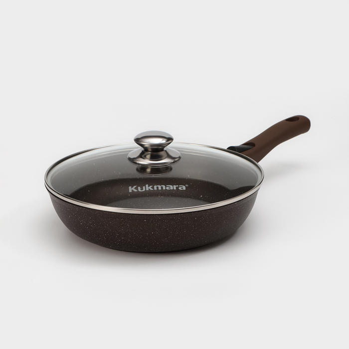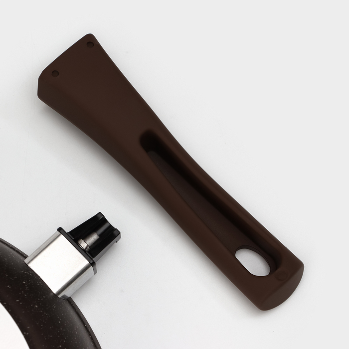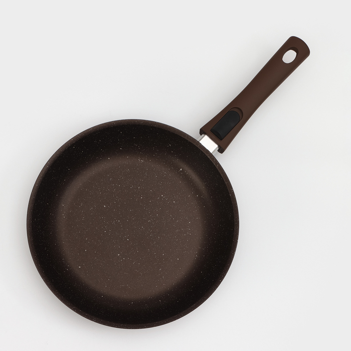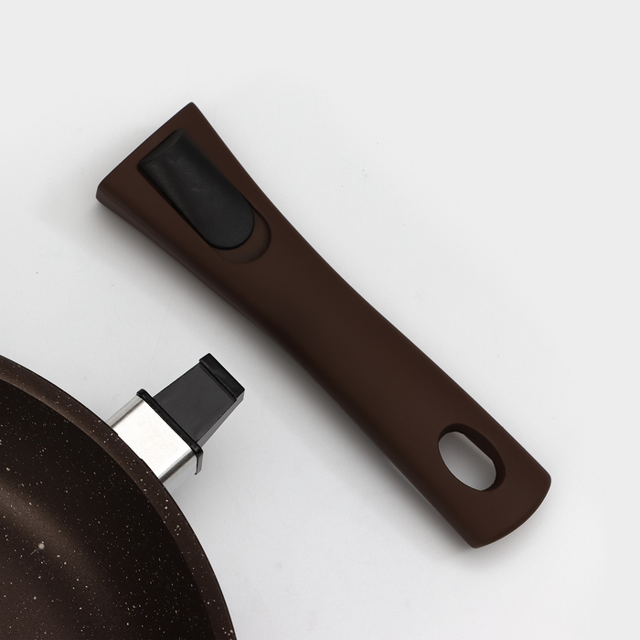 Сковорода, d=26 см, съёмная ручка, стеклянная крышка, антипригарное покрытие, цвет кофейный мрамор