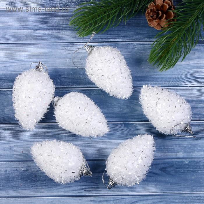 Украшение ёлочное "Сосулька - пушинка" (набор 6 шт) 4х6 см, белый