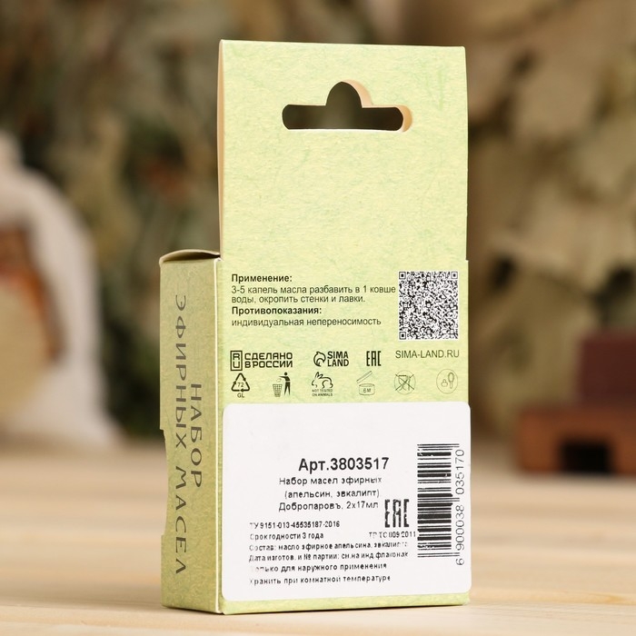 Набор эфирных масел эвкалипт, апельсин "Добропаровъ", 2 шт по 17 мл
