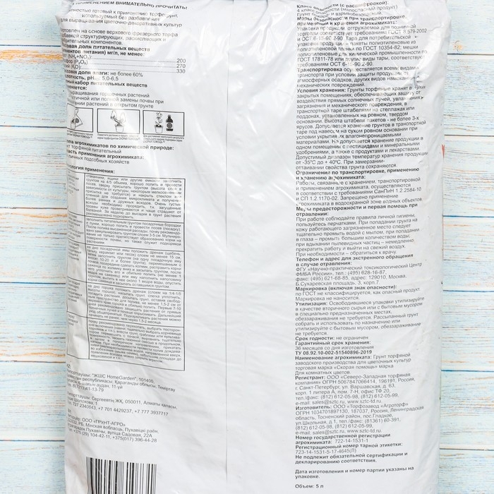 Грунт для комнатных цветов "Скорая помощь", 5 л